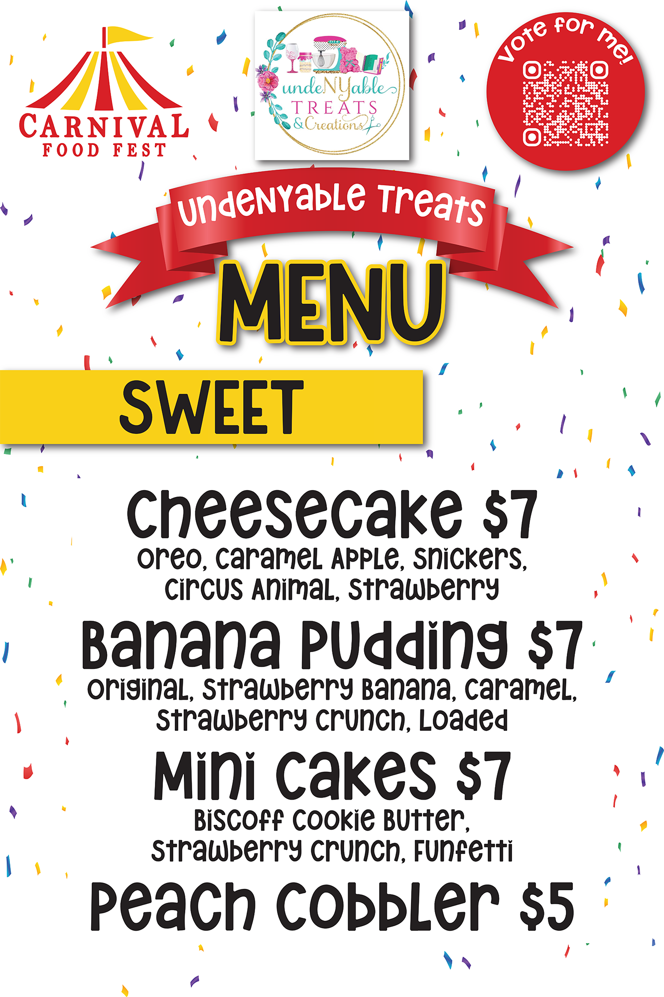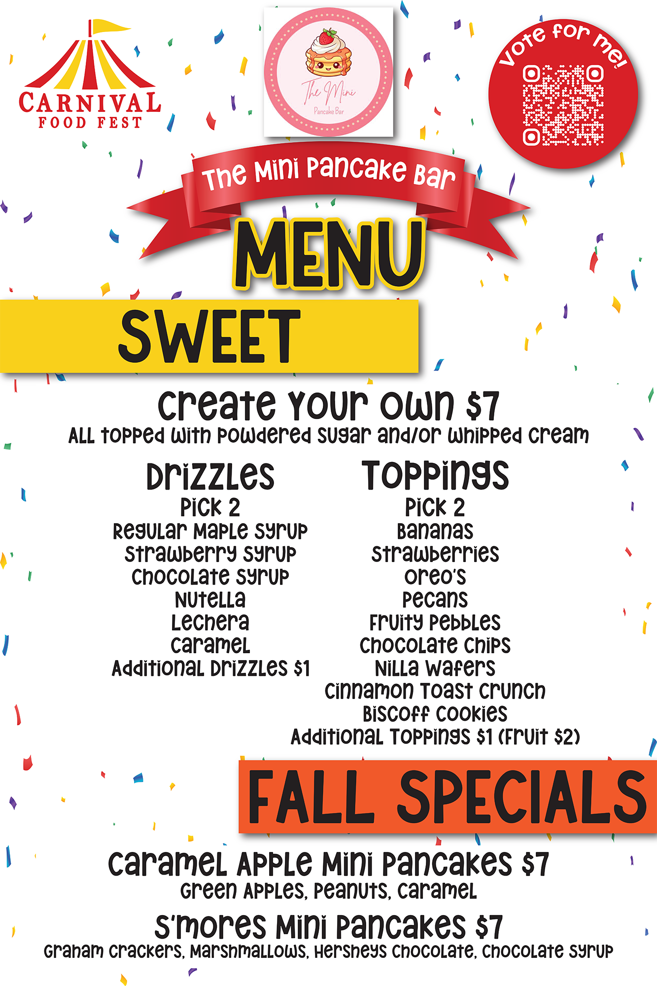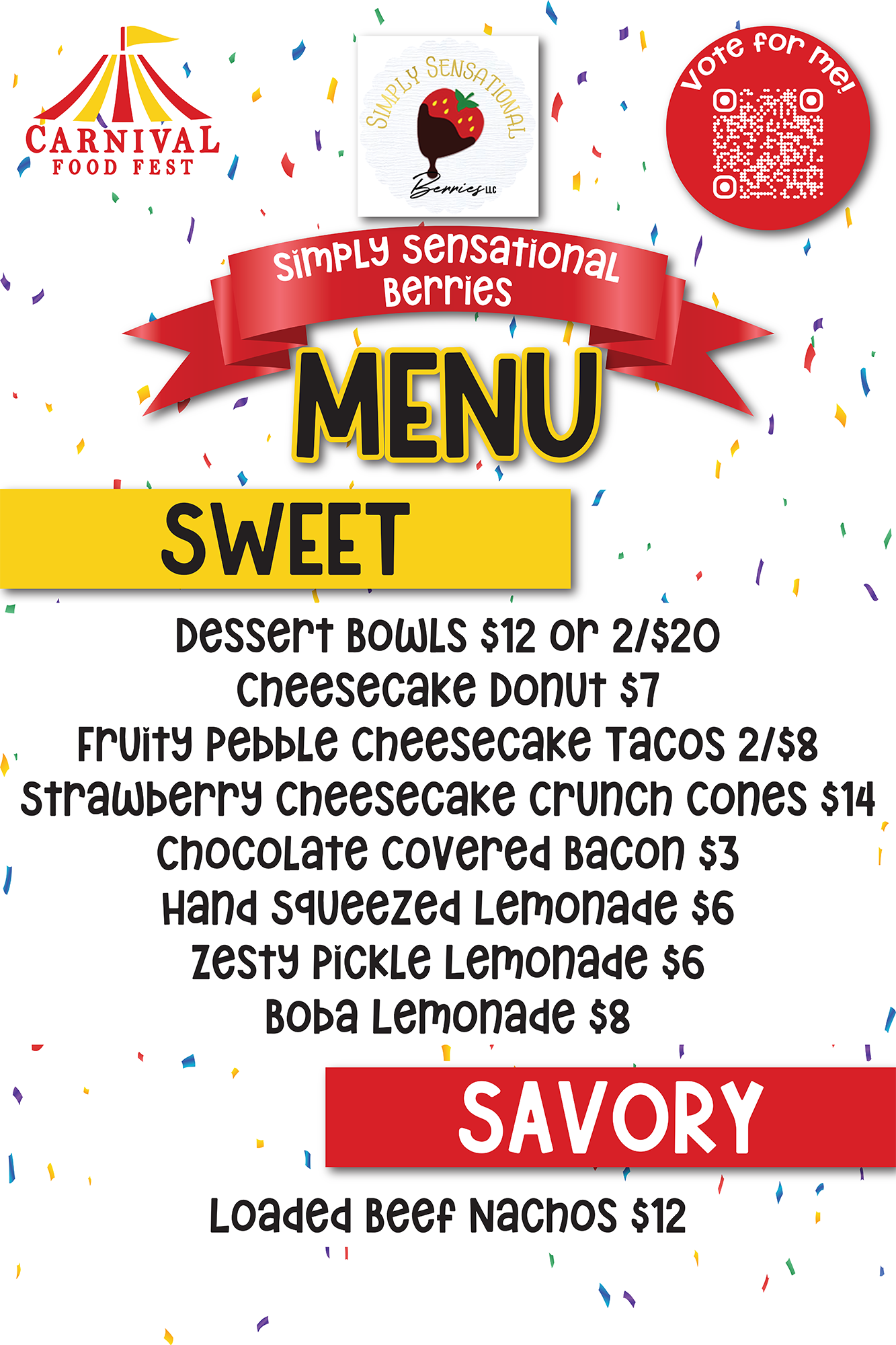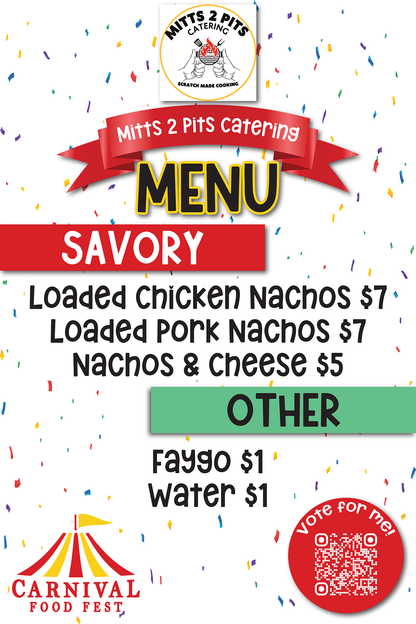 Enjoy delicious carnival food from our wide variety of vendors! Be sure to vote for your favorite Savory and Sweet foods! Awards will be given to the top Savory and Sweet food vendors.