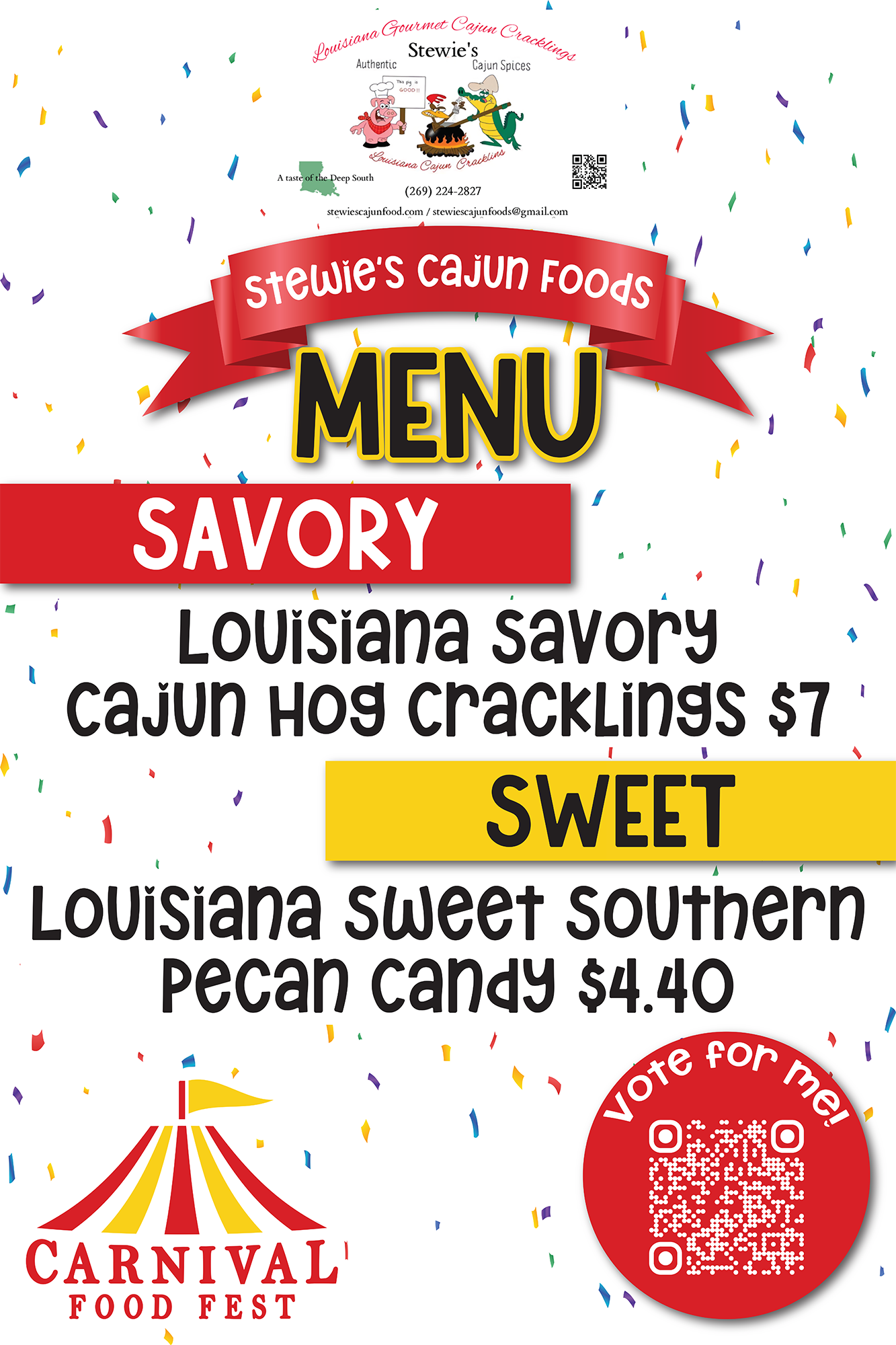 Join us for a delightful Carnival Food Festival in downtown Battle Creek, Michigan, at Kellogg Arena on November 9th, from 3 pm to 7 pm.